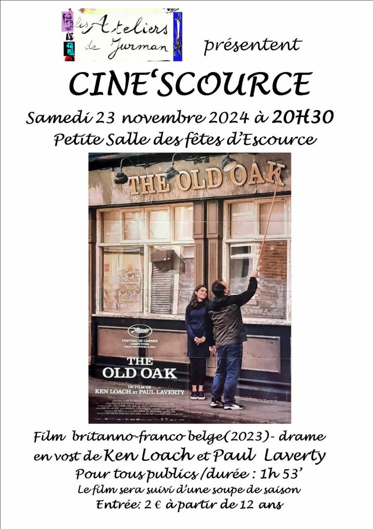 Cin'Escource Publié le 24 octobre 2024 / Dernière modification le 24 octobre 2024 Cin'Escource Cin'Escource Publié le 24/10/2024 - Dernière modification le 24/10/2024 Le samedi 23 novembre 2024 de 20:30 à 23:00 Proposé par les Ateliers de Jurman "The Old Oak" de Ken Loach
